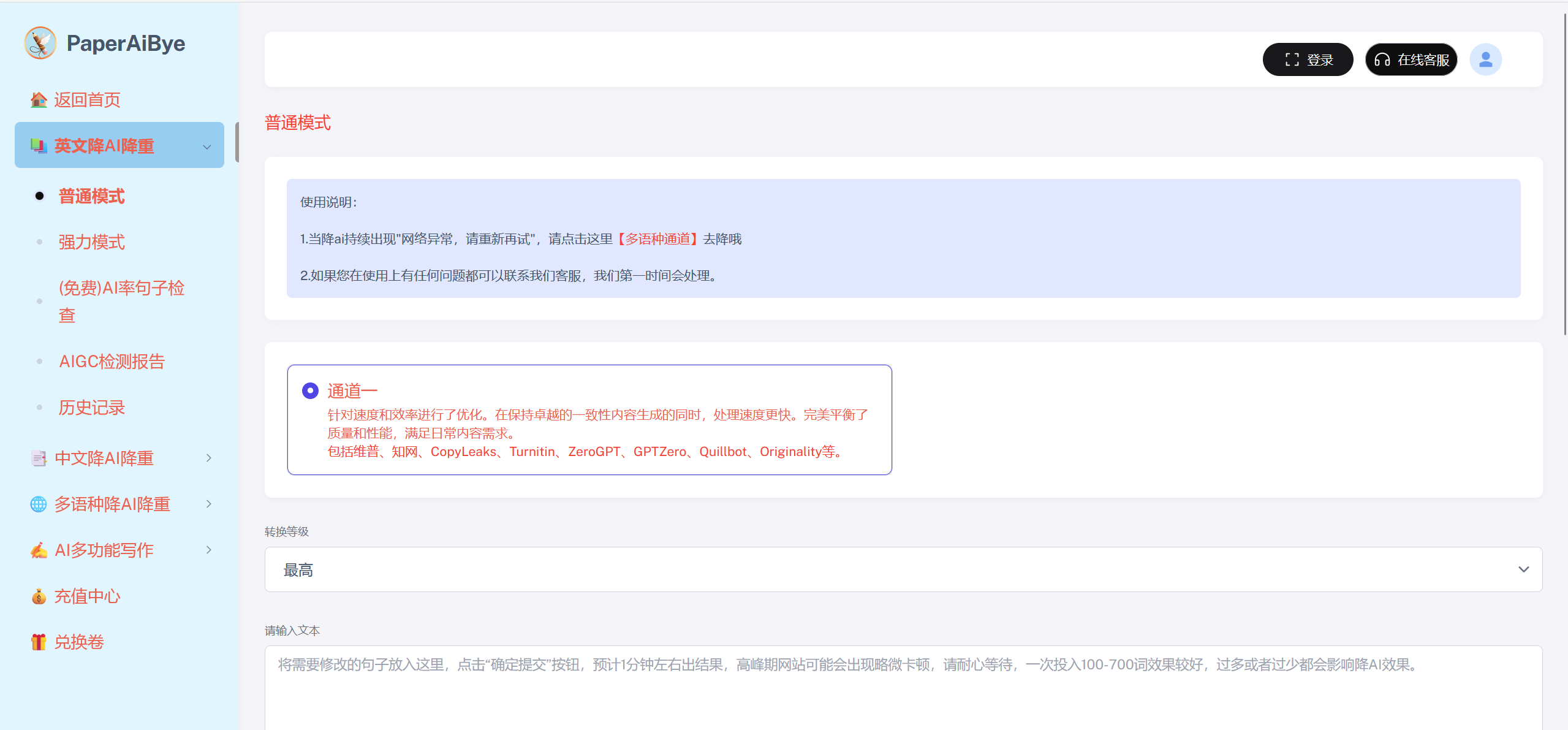 但这次PaperAiBye直接把中文降AI通道“扒了重造”:全新模型上线后,不仅降AI效果翻倍,文章质量比原来高80% ,更绝的是——没有生僻字、没有口语化、没有逻辑断层!